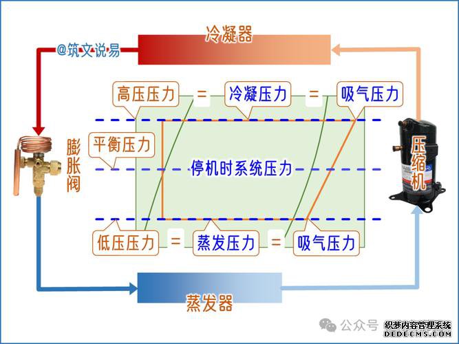 平衡压力是指压缩机不工作时,高低压平衡时的压力;高压压力是指排气压力或冷凝压力;低压压力是指吸气压力或蒸发压力。三个压力的测量都是在室外机气阀的工艺口上,制冷运转时为低压压